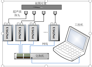 USGNet还提供了功能丰富的二次开发工具包,可自主开发应用软件,展现个性化应力测量需求。图1.2和图1.3分别是单通道和多通道组合检测连接示意图。